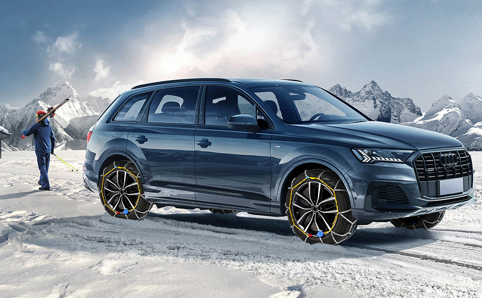 Auto Tightening Snow Chains Tire Chains For Cars Suv Pickup Trucks - Auto Tightening 1 Min Quick Fit AND Easy Installation, Reusable Universal Emergency Traction Snow Chains - Set of 2
